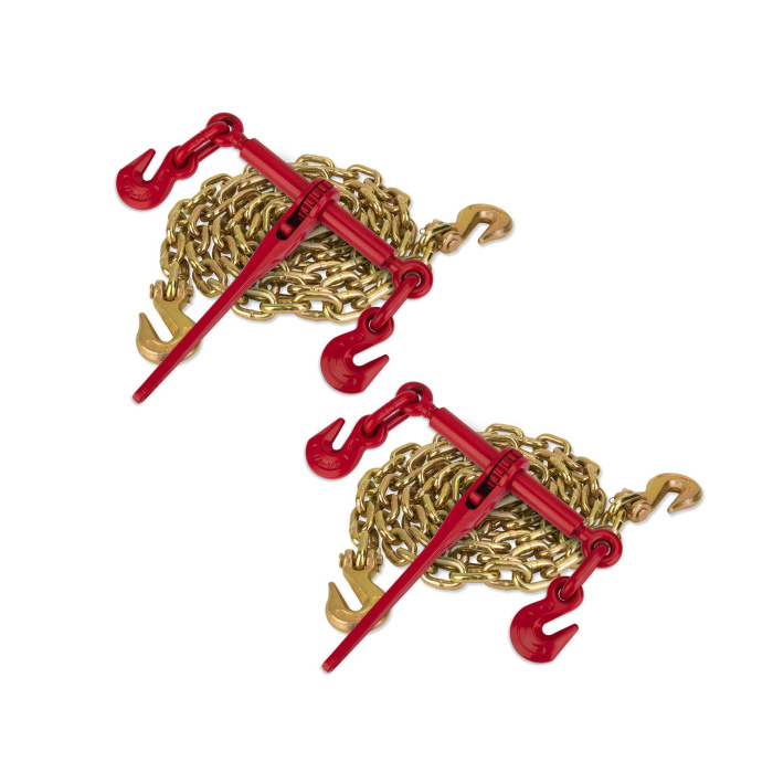 ಟೈ-ಡೌನ್ ಚೈನ್ಗಳು ಮತ್ತು ಬೈಂಡರ್ಗಳು: ಸಾರಿಗೆ ಸರಪಳಿಗಳು ಮತ್ತು ರಾಟ್ಚೆಟ್ ಚೈನ್ ಬೈಂಡರ್ಗಳು ನಿಮ್ಮ ಟ್ರಕ್ ಅಥವಾ ಫ್ಲಾಟ್ಬೆಡ್ ಟ್ರೈಲರ್ಗೆ ಭಾರವಾದ ಹೊರೆಗಳನ್ನು ಬಿಗಿಗೊಳಿಸುತ್ತದೆ. ಕೈಗಾರಿಕಾ, ಕೃಷಿ, ಲಾಗಿಂಗ್ ಮತ್ತು ಟೋವಿಂಗ್ ಅಪ್ಲಿಕೇಶನ್ಗಳಿಗೆ ಸೂಕ್ತವಾಗಿದೆ. ಸ್ಟ್ಯಾಂಡರ್ಡ್ ಲಿಂಕ್ ಗ್ರೇಡ್ 70 ಚೈನ್ ಅನ್ನು ದೀರ್ಘಾವಧಿಯ ಗುಣಮಟ್ಟಕ್ಕಾಗಿ ಹೆಚ್ಚಿನ ಸಾಮರ್ಥ್ಯದ, ಕಡಿಮೆ-ಮಿಶ್ರಲೋಹದ ಕಾರ್ಬನ್ ಸ್ಟೀಲ್ನಲ್ಲಿ ತಯಾರಿಸಲಾಗುತ್ತದೆ.